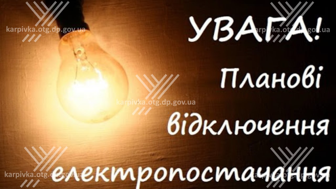У зв'язку з виконанням цих робіт буде відключення електроенергії у таких населених пунктах: