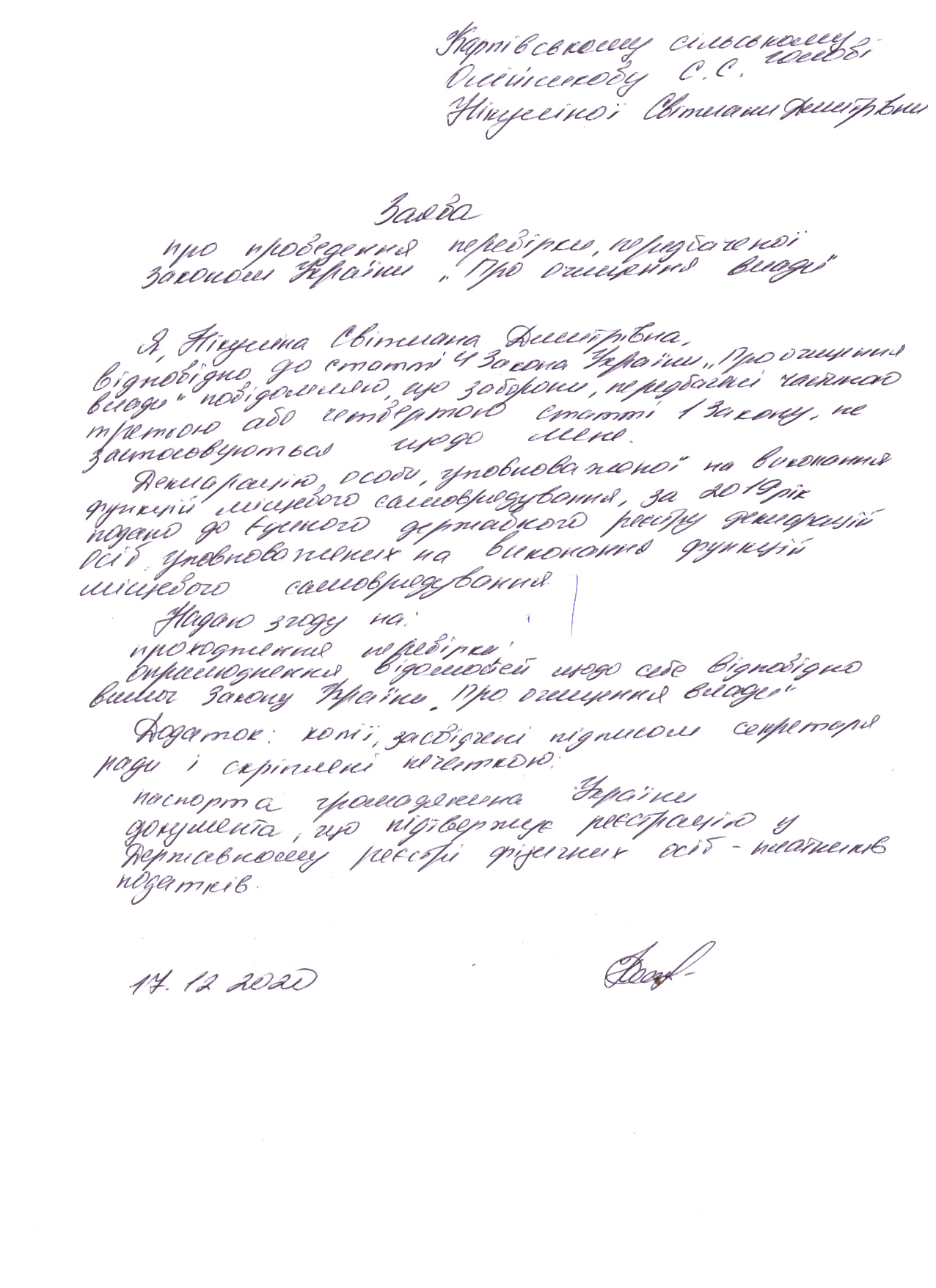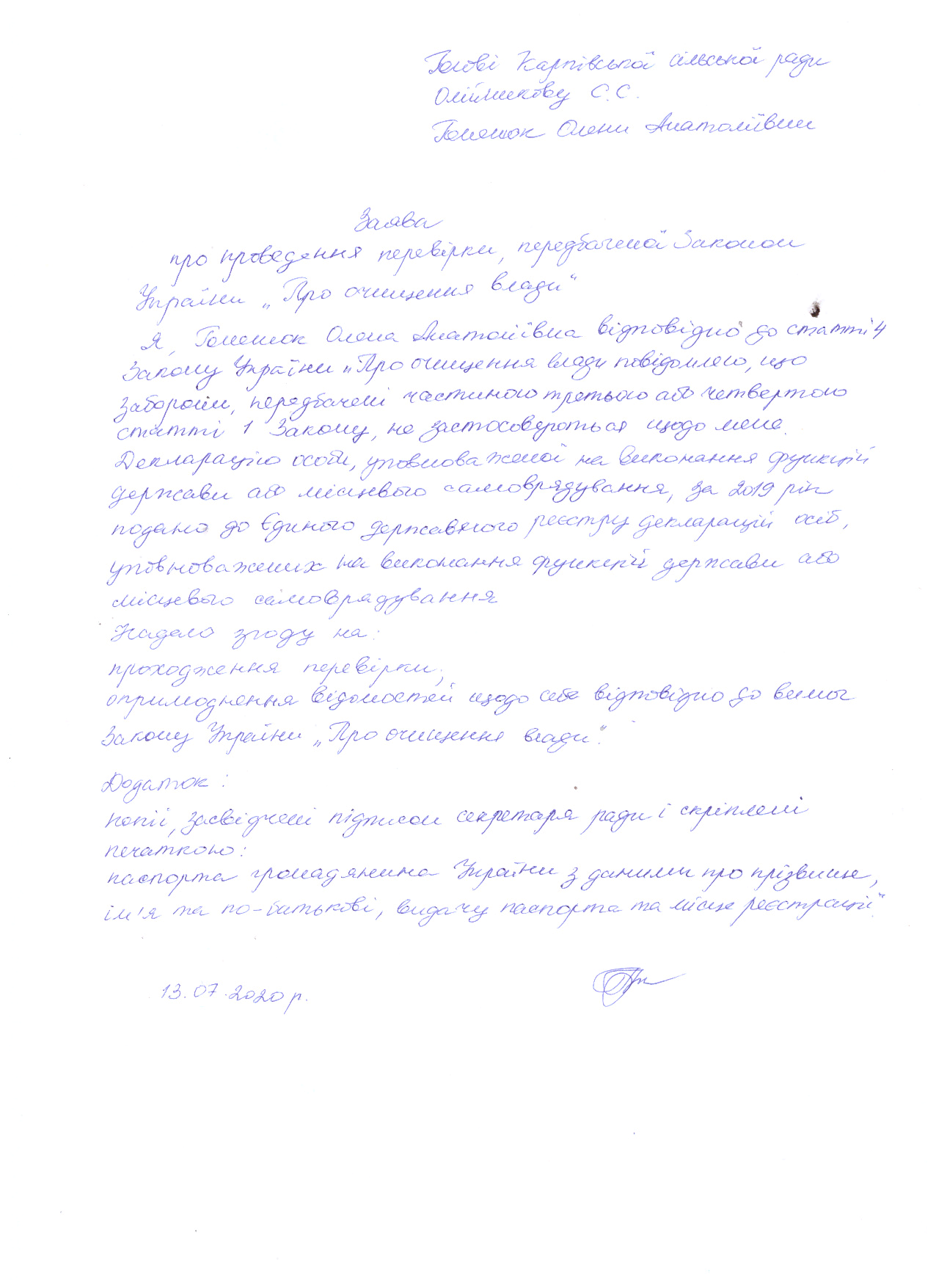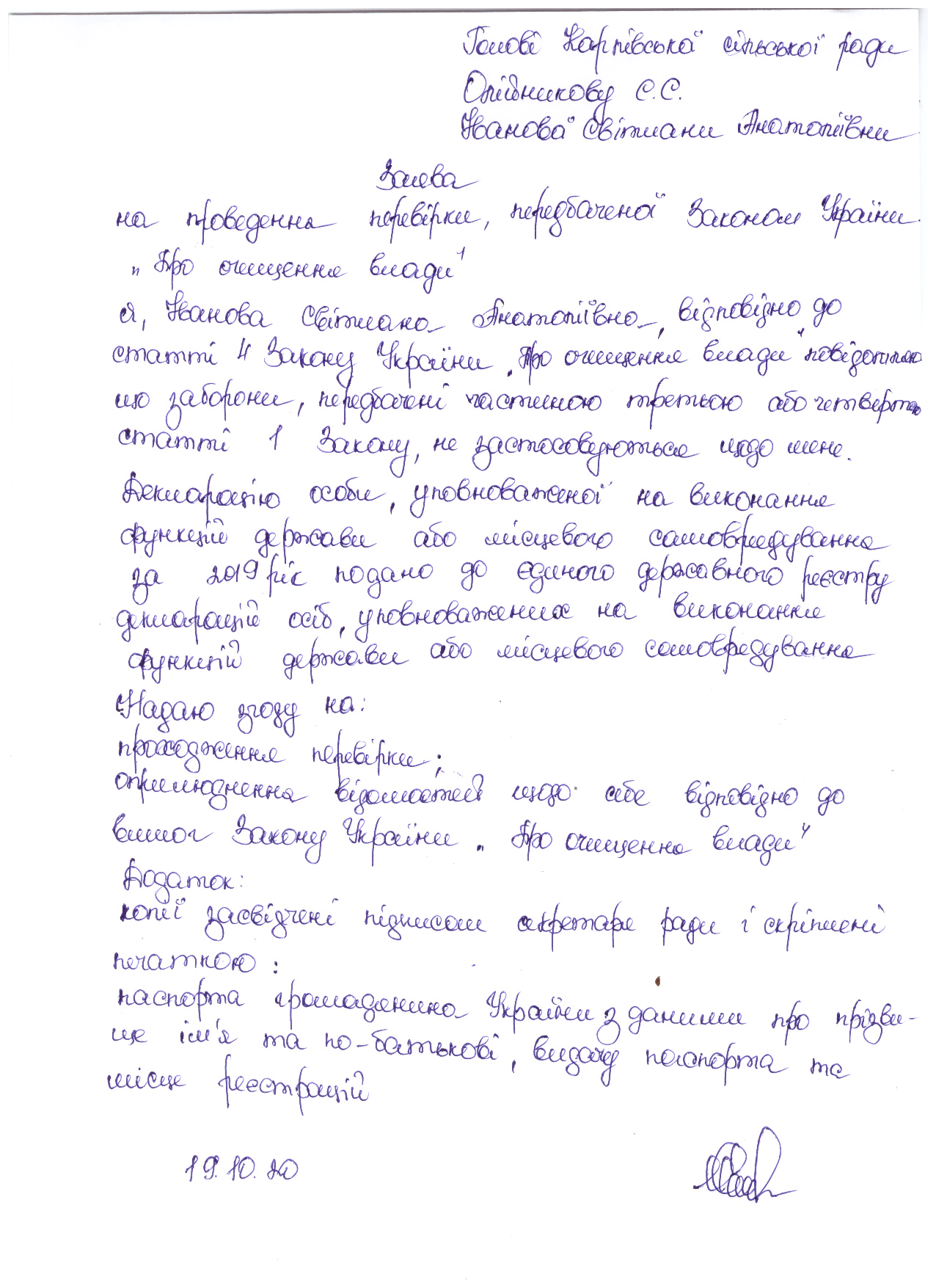 Законом України "Про очищення влади" передбачено проведення перевірки достовірності відомостей щодо застосування заборон, передбачених частинами третьою і четвертою статті 1 Закону України «Про очищення влади», поданих державними службовцями та посадовими особами місцевого самоврядування, які обіймають відповідні посади, та претендентами на їх заміщення.