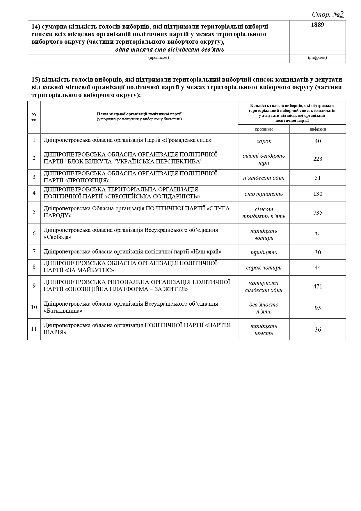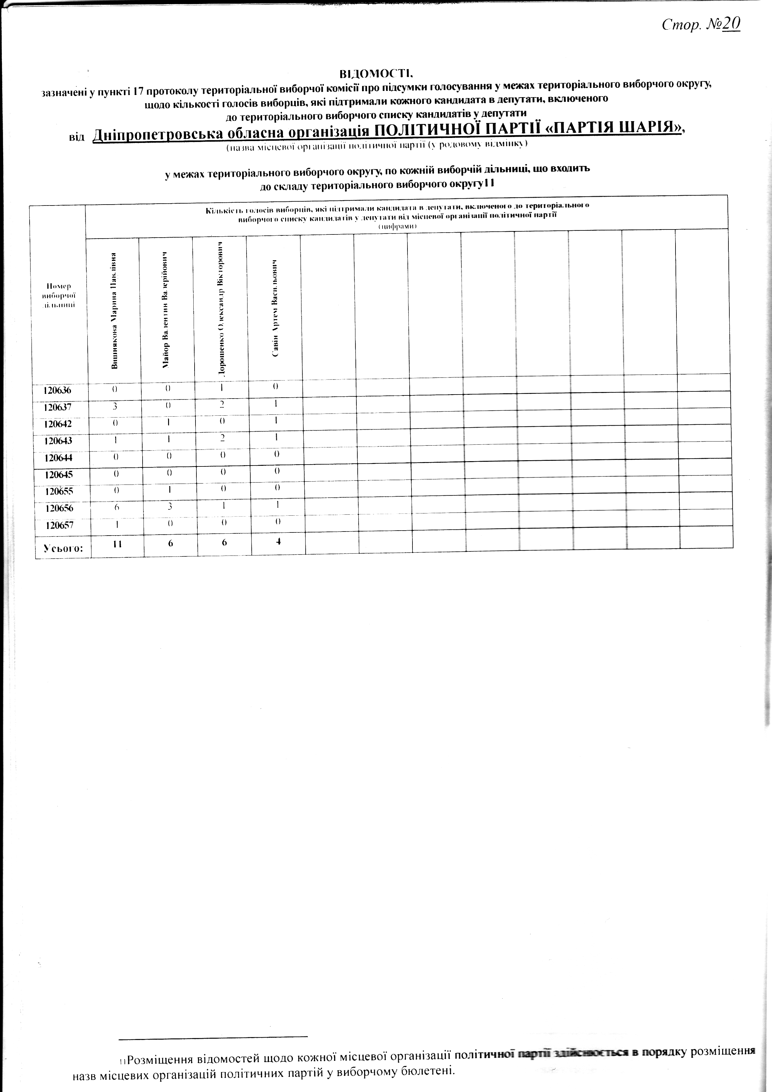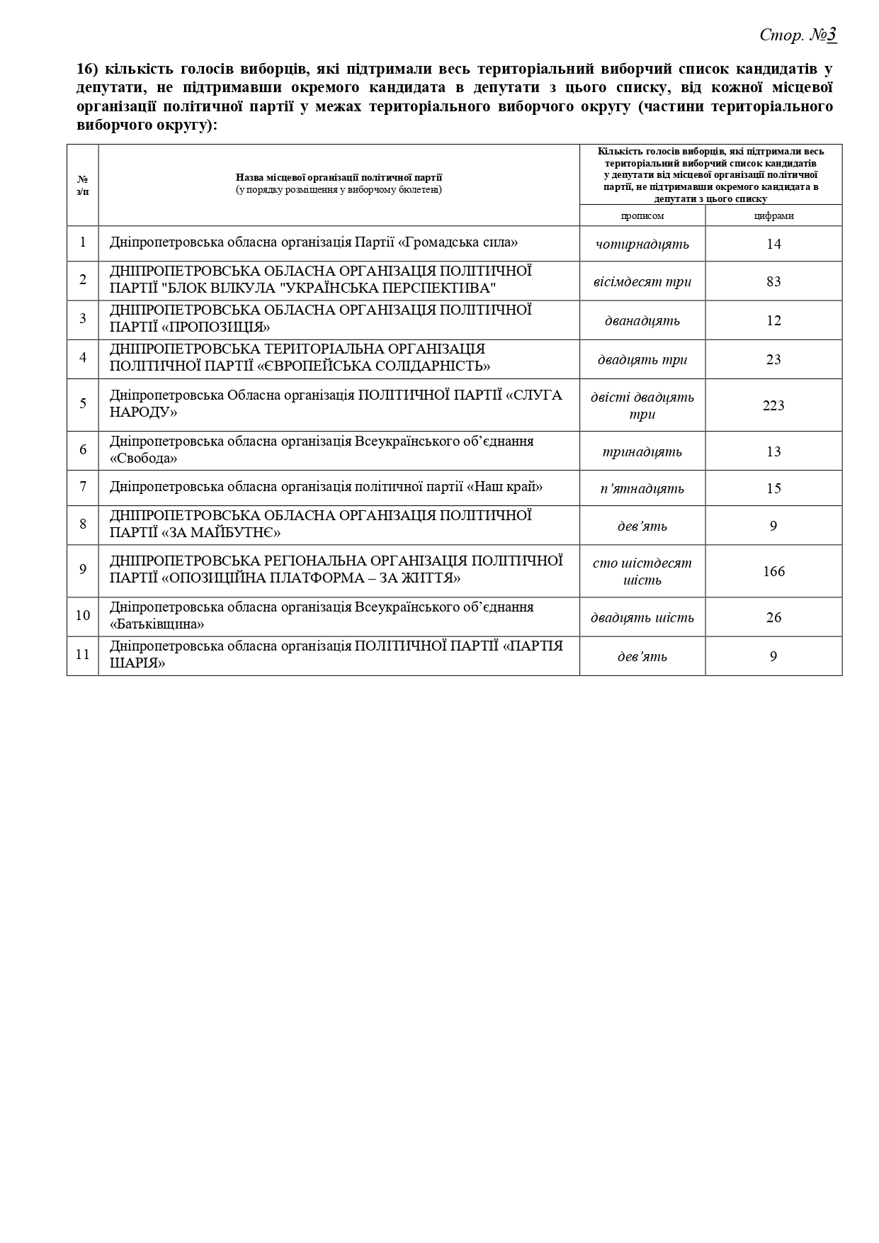 Підсумки голосування з виборів депутатів Дніпропетровської обласної ради у межах частини територіального виборчого округу № 11