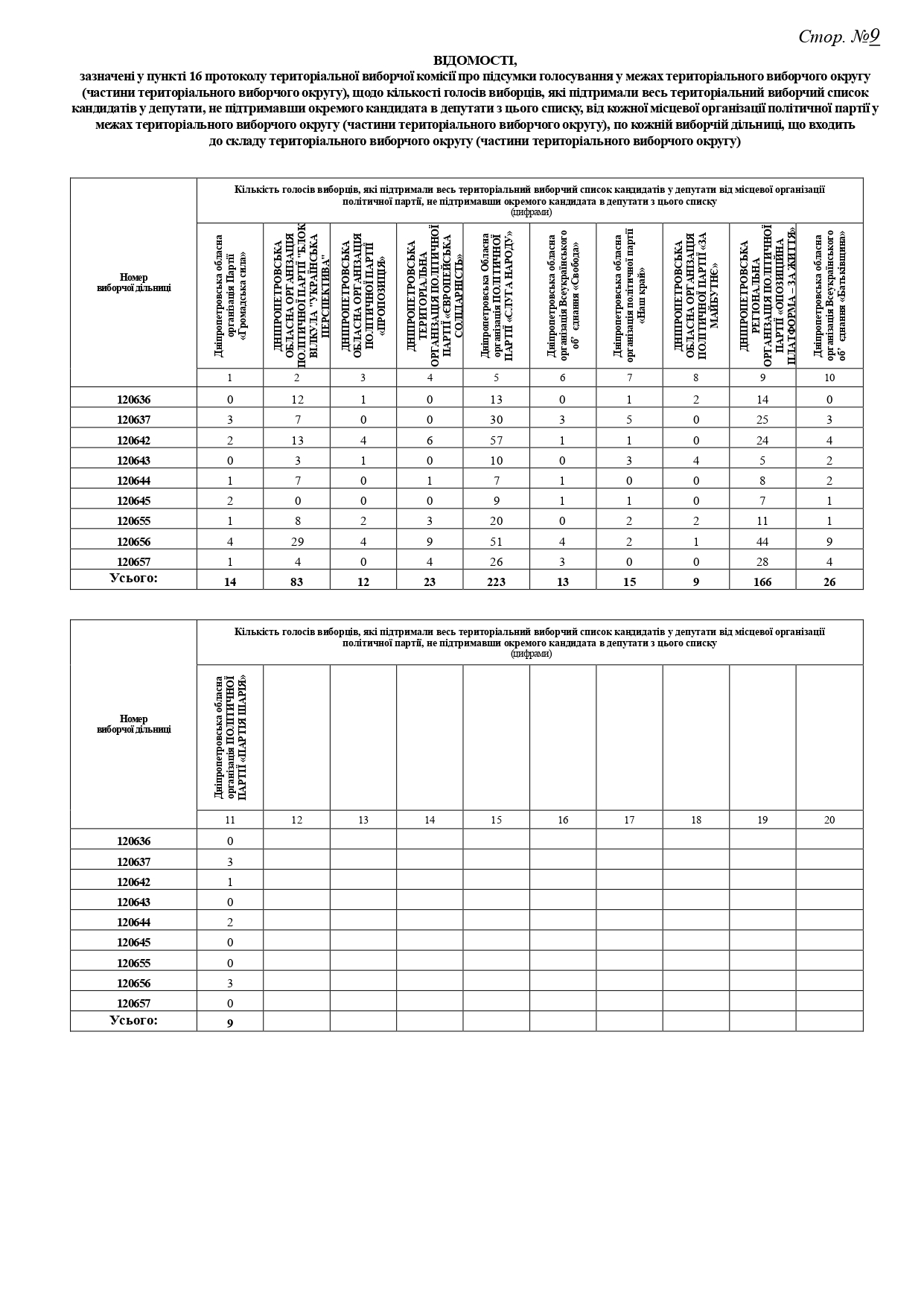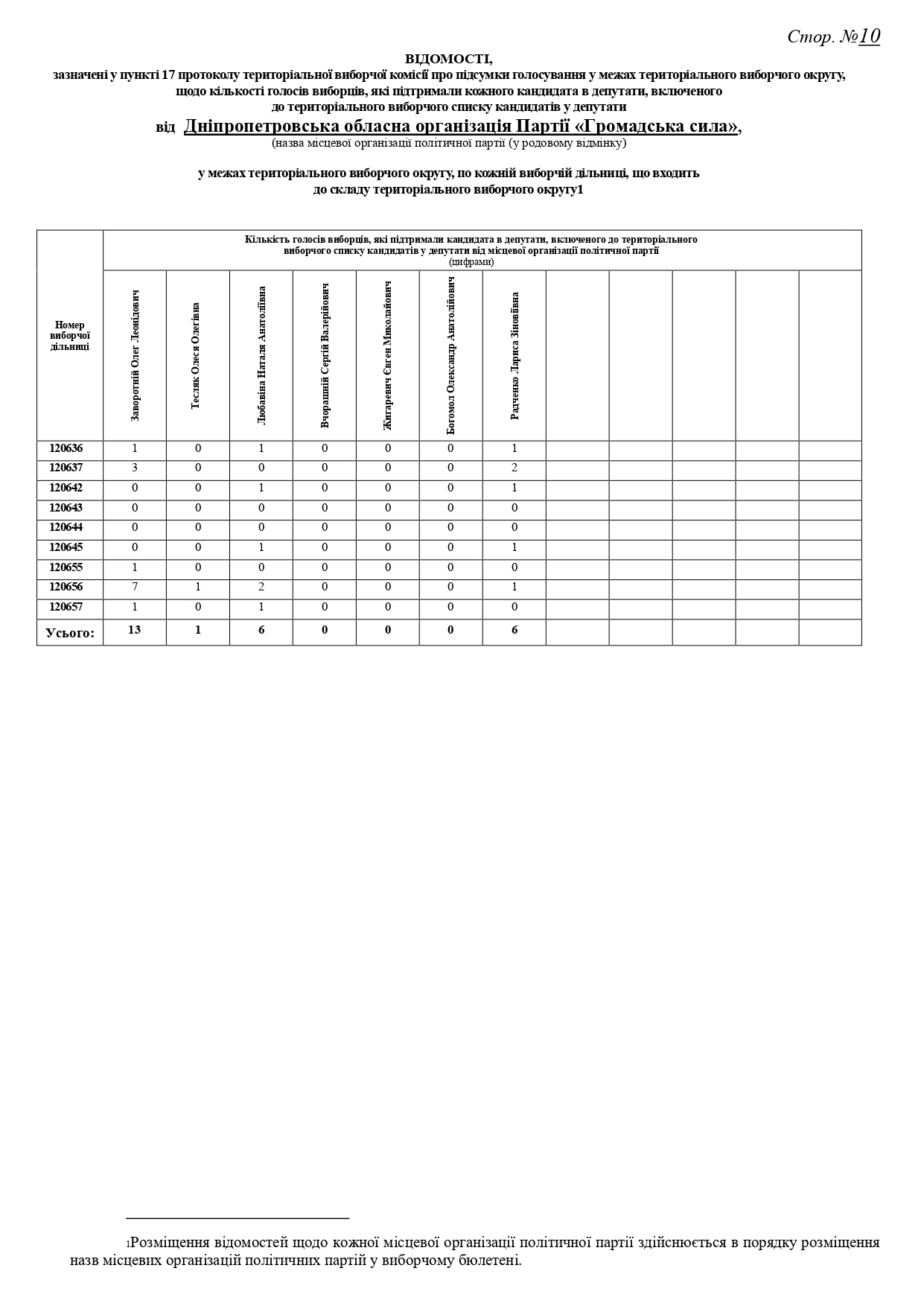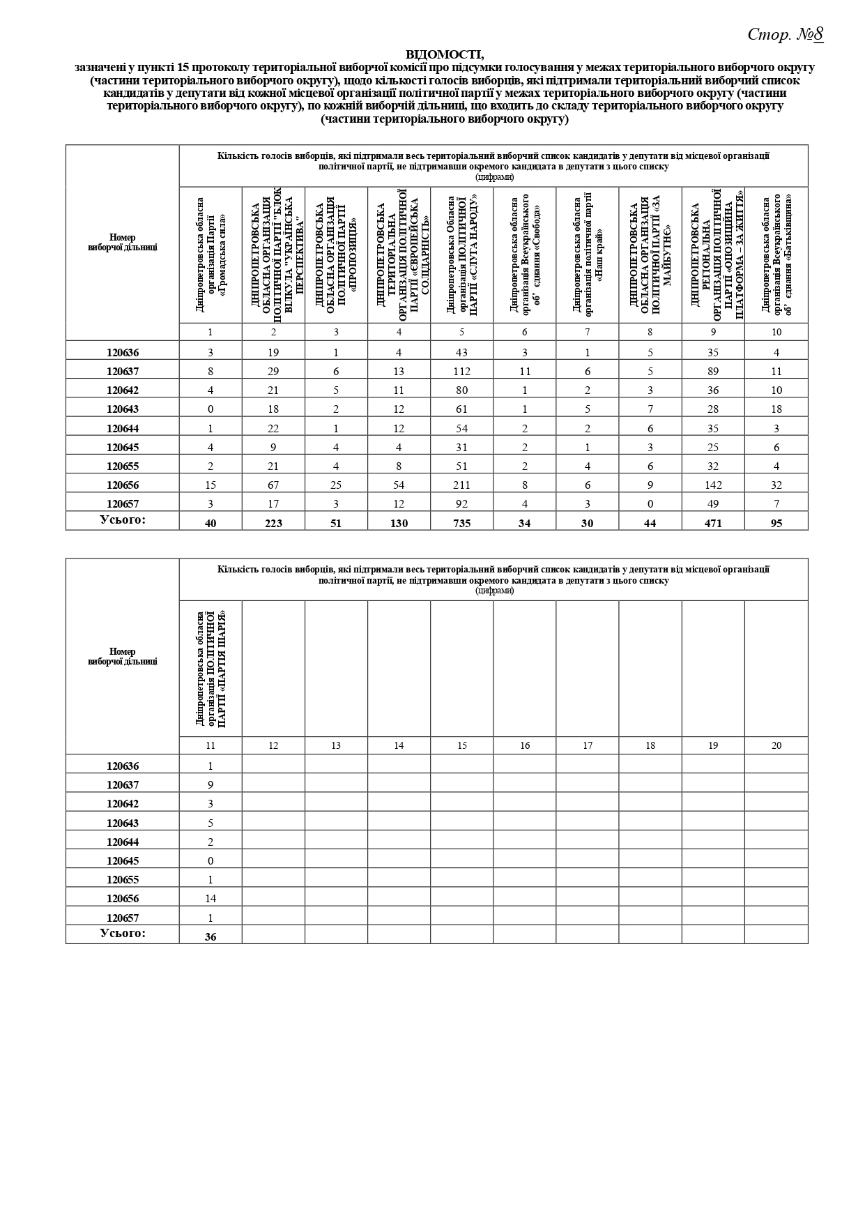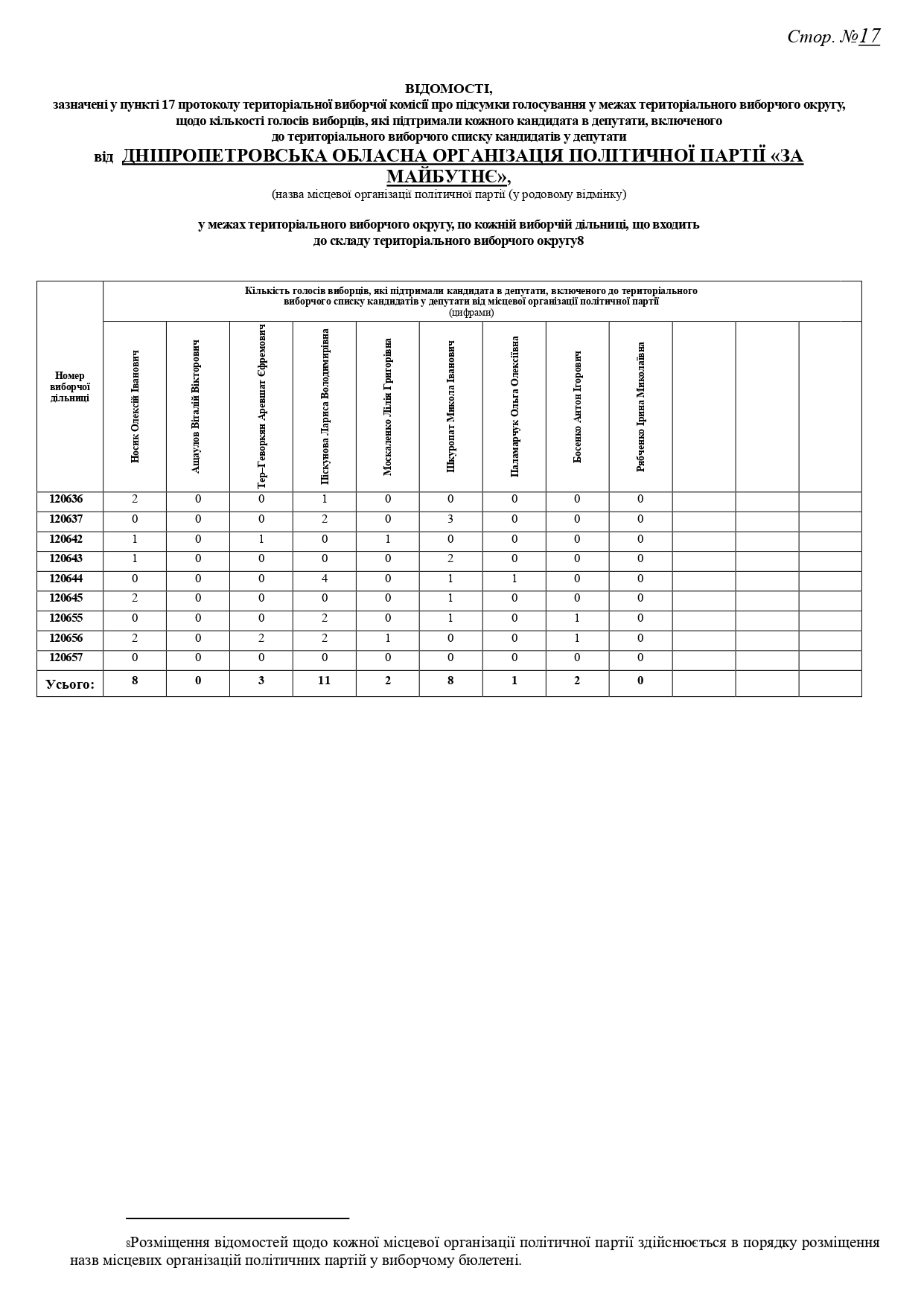 Підсумки голосування з виборів депутатів Дніпропетровської обласної ради у межах частини територіального виборчого округу № 11