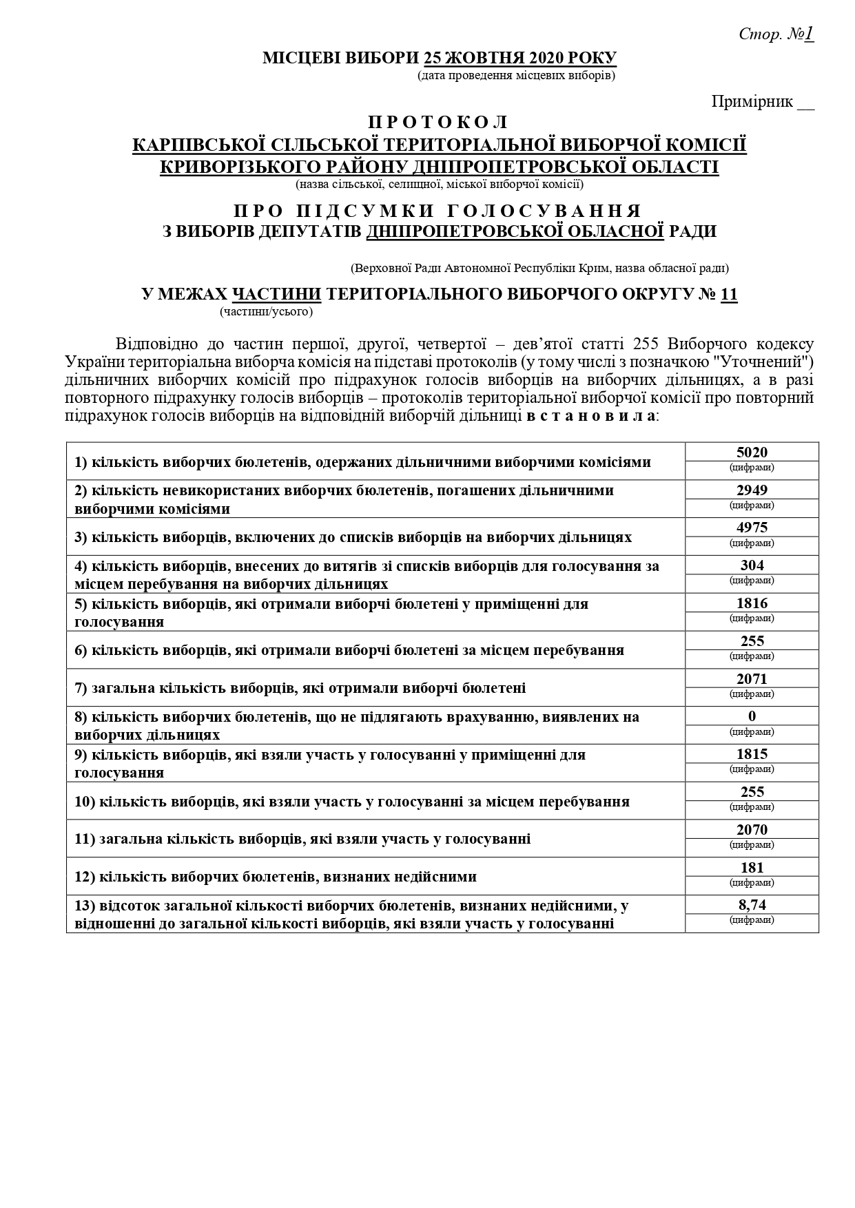 Результати виборів сільського голови та депутатів Карпівської сільської ради Криворізького району Дніпропетровської області