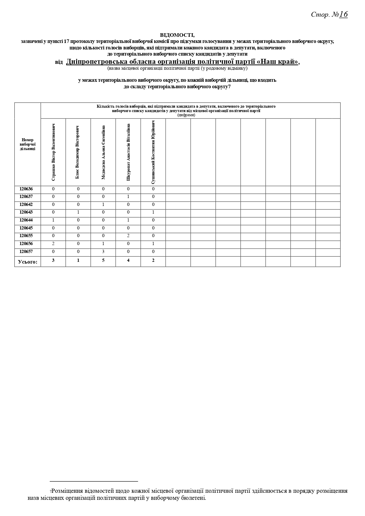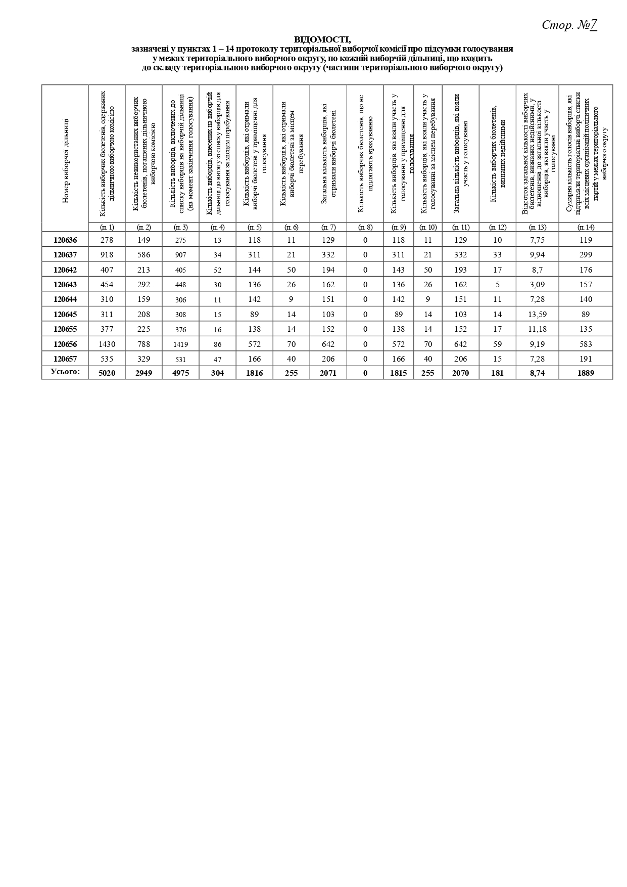 Підсумки голосування з виборів депутатів Криворізької районної ради у межах частини територіального виборчого округу № 7