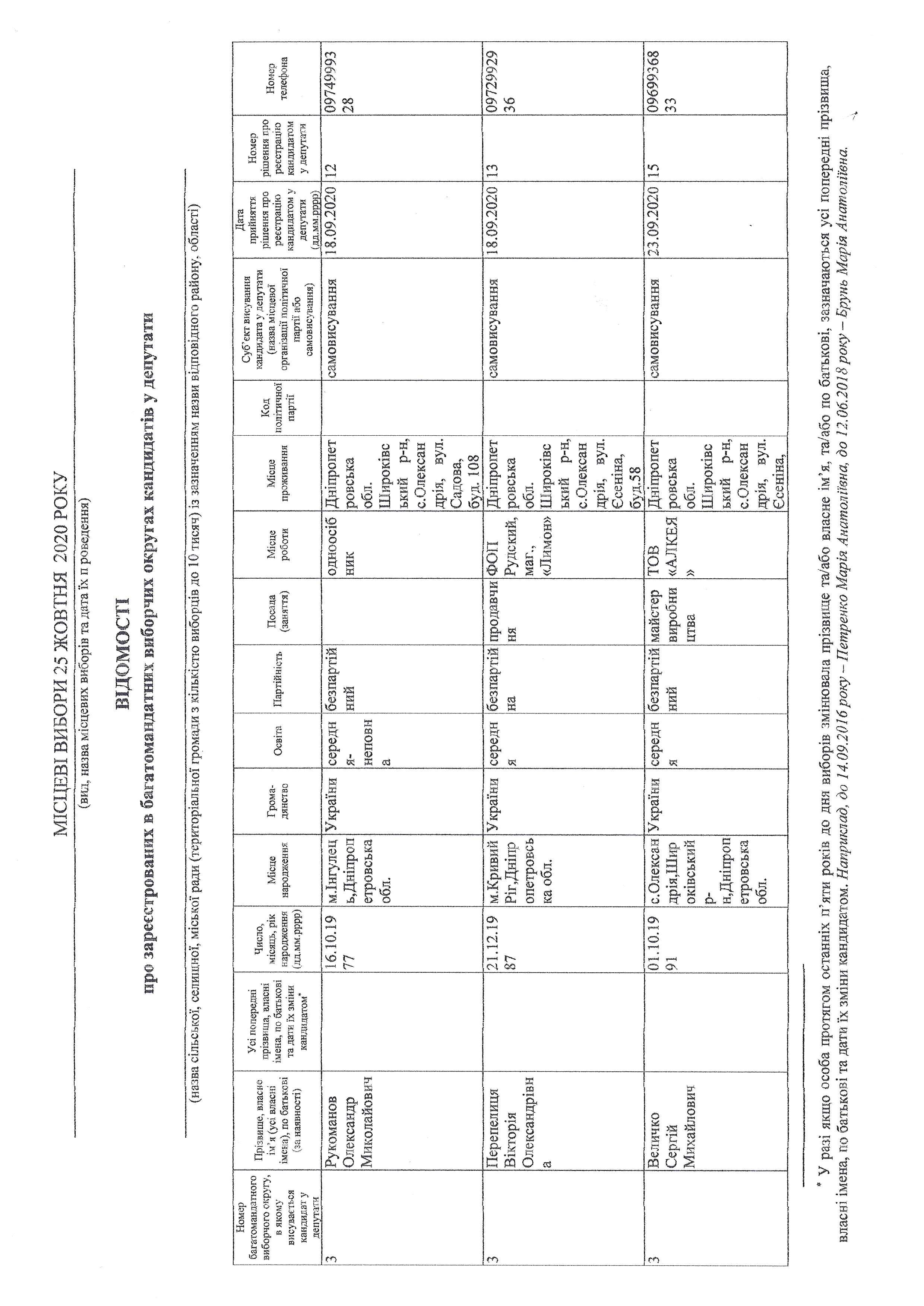 Відомості про зареєстрованих в багатомандатних виборчих округах кандидатів у депутати Карпівської сільської ради