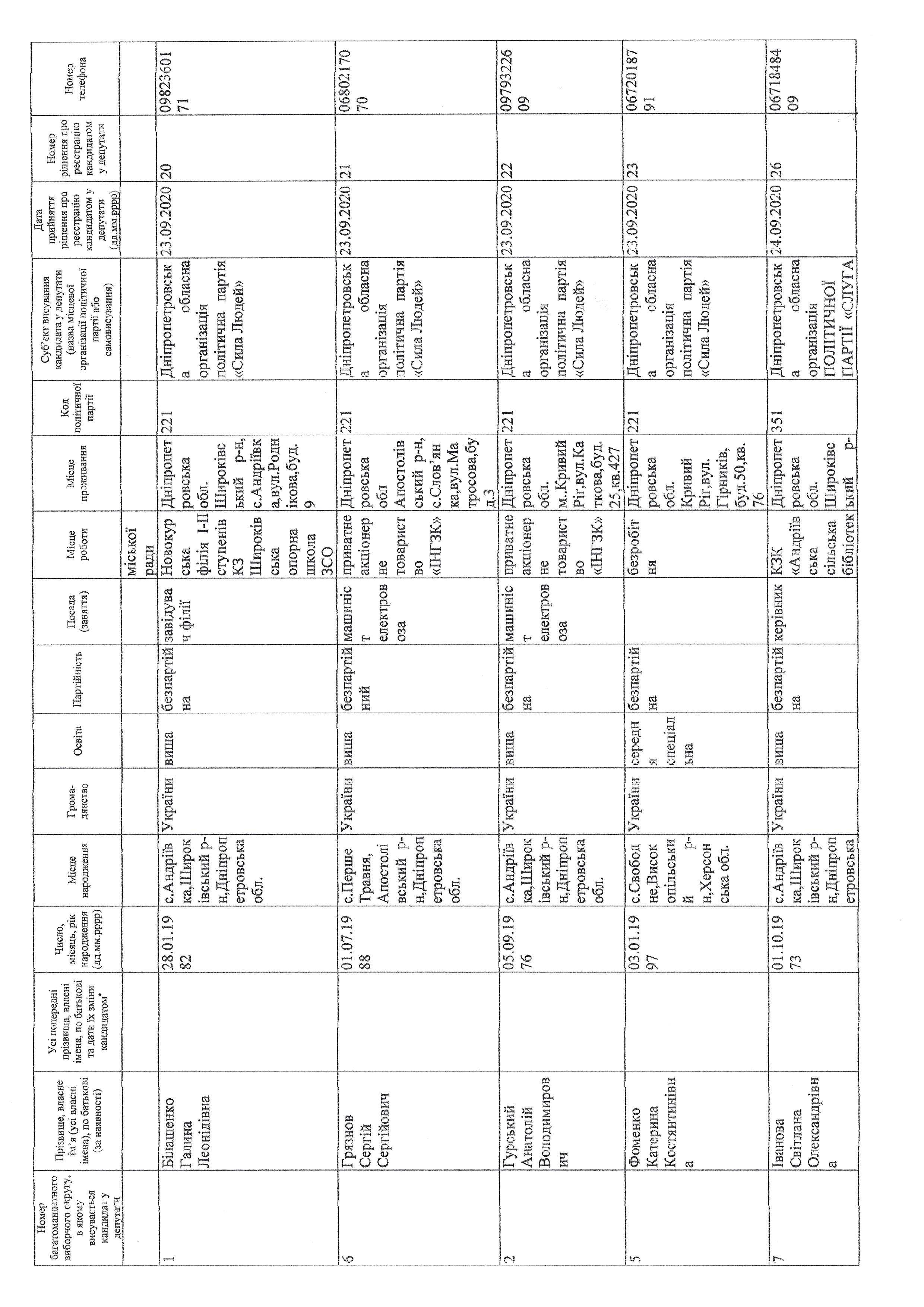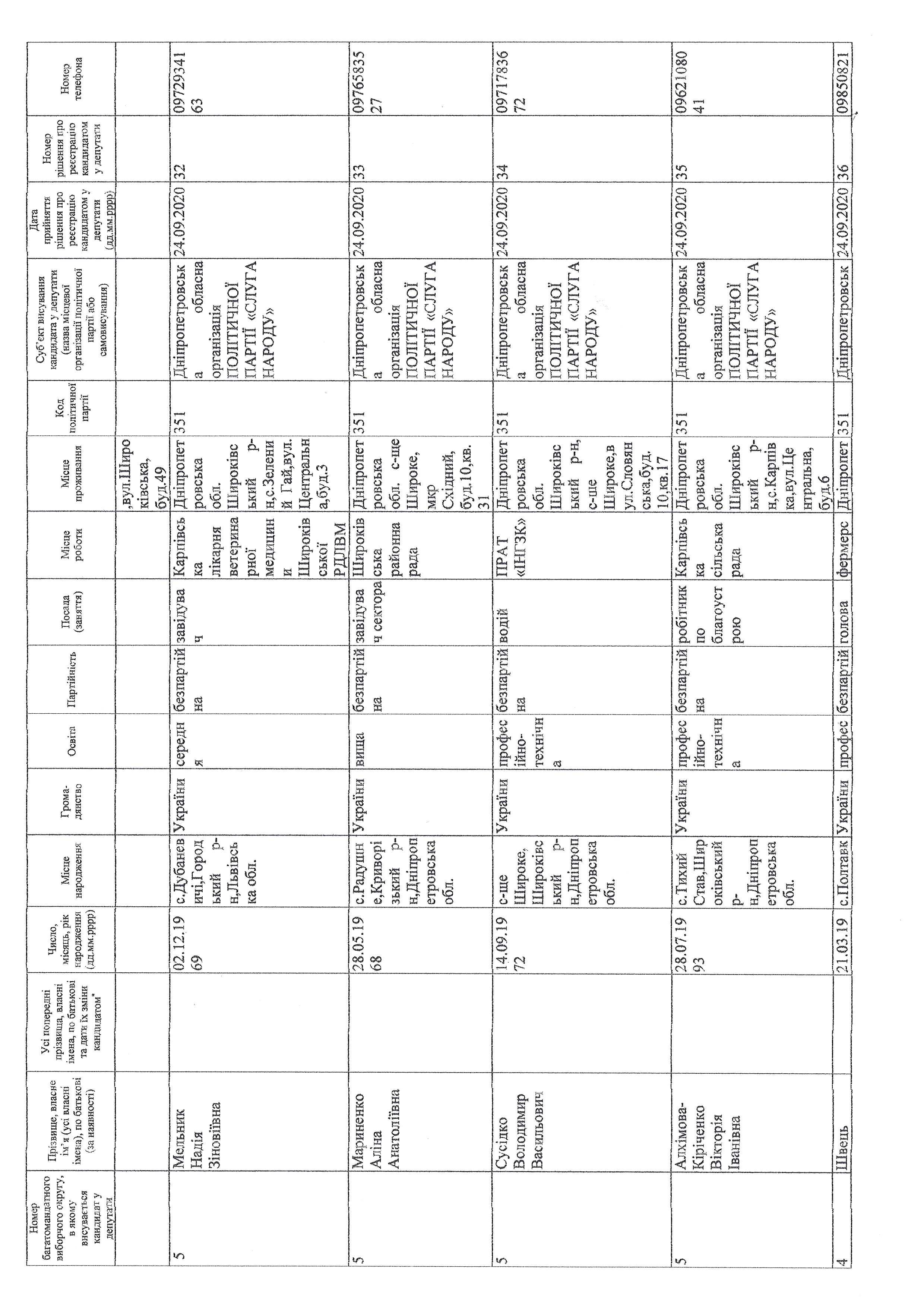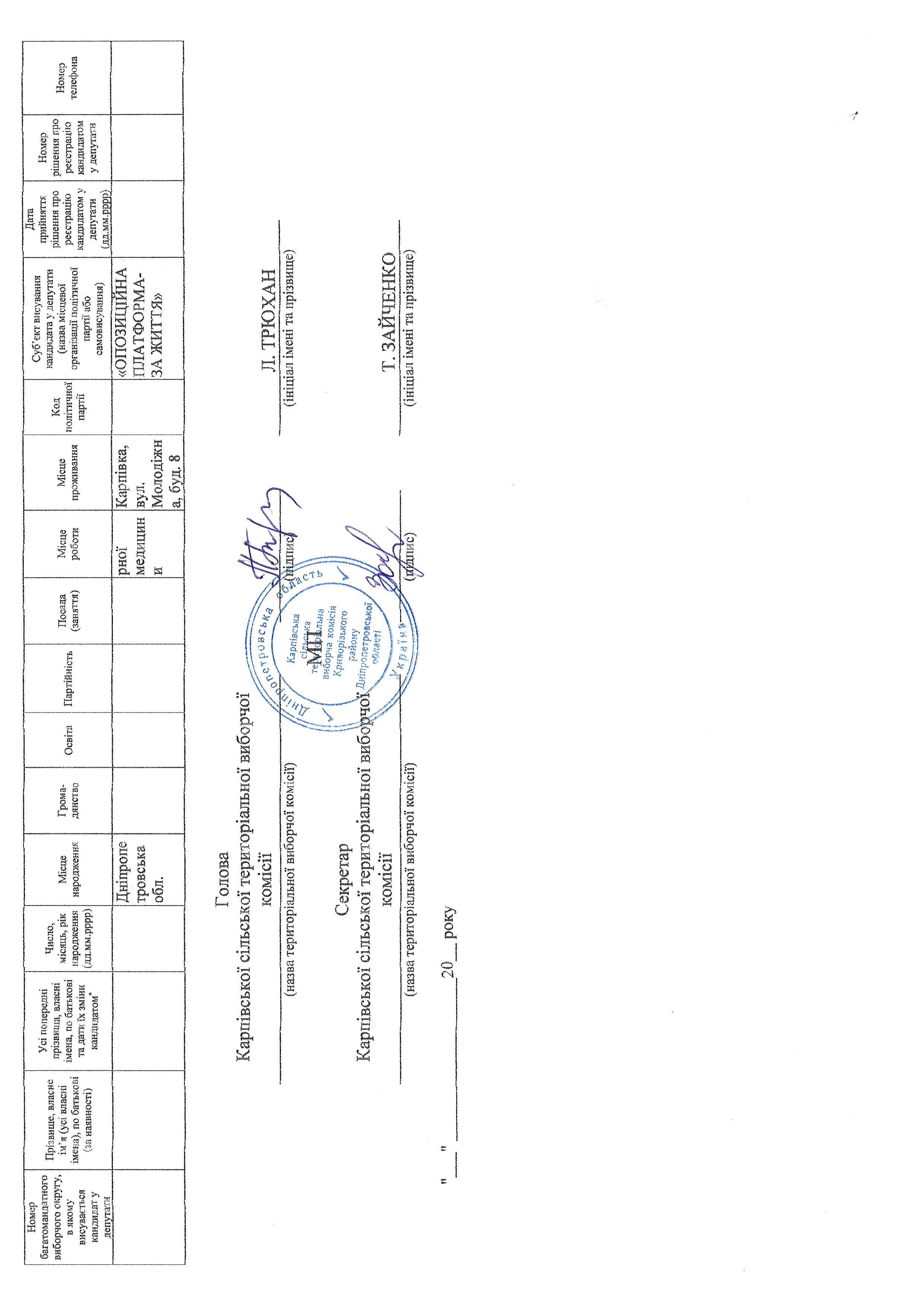 Відомості про зареєстрованих кандидатів на посаду Карпівського сільського голови